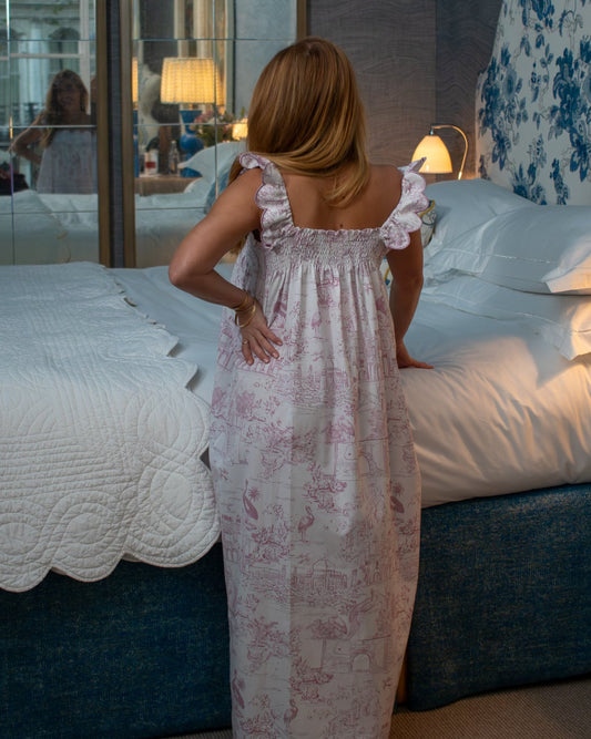 بيجامة طويلة وردية اللون بنقشة قماش التويل