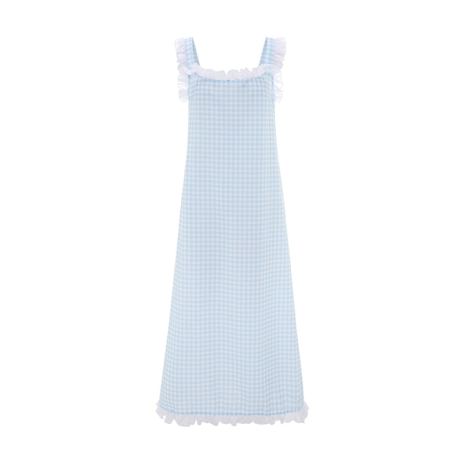 Say ciao bella to the Dolce Gingham Sleepdress in Azzurro, a playful yet graceful sleepwear classic. Crafted from breathable organic cotton and finished in nostalgic baby blue and white gingham, this dress captures the serene spirit of Italian summers. With our signature romantic details, it’s perfect for lounging at home, strolling on holiday, or drifting into dreamy sleep